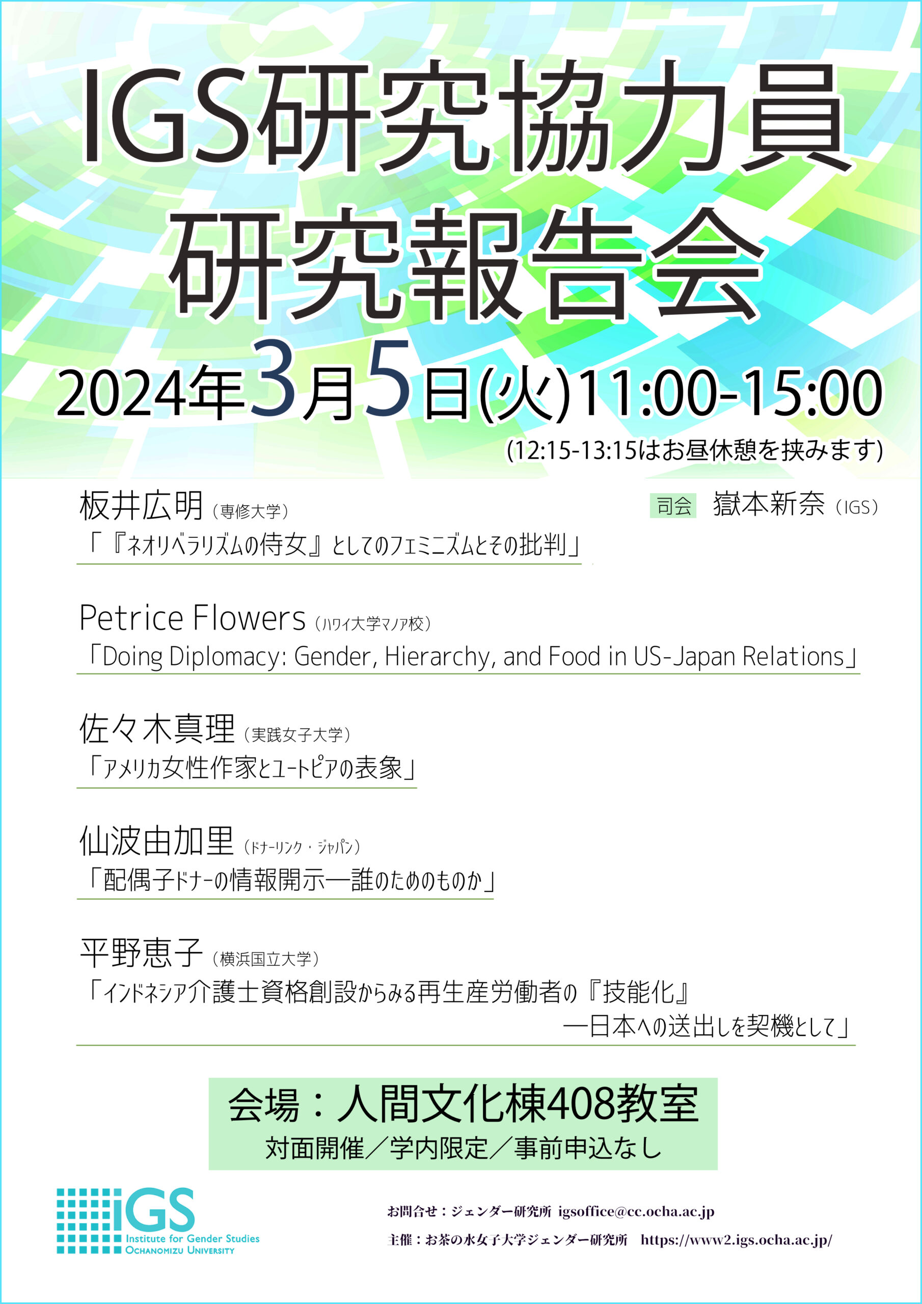 会場:お茶の水女子大学共通講義棟2号館102室