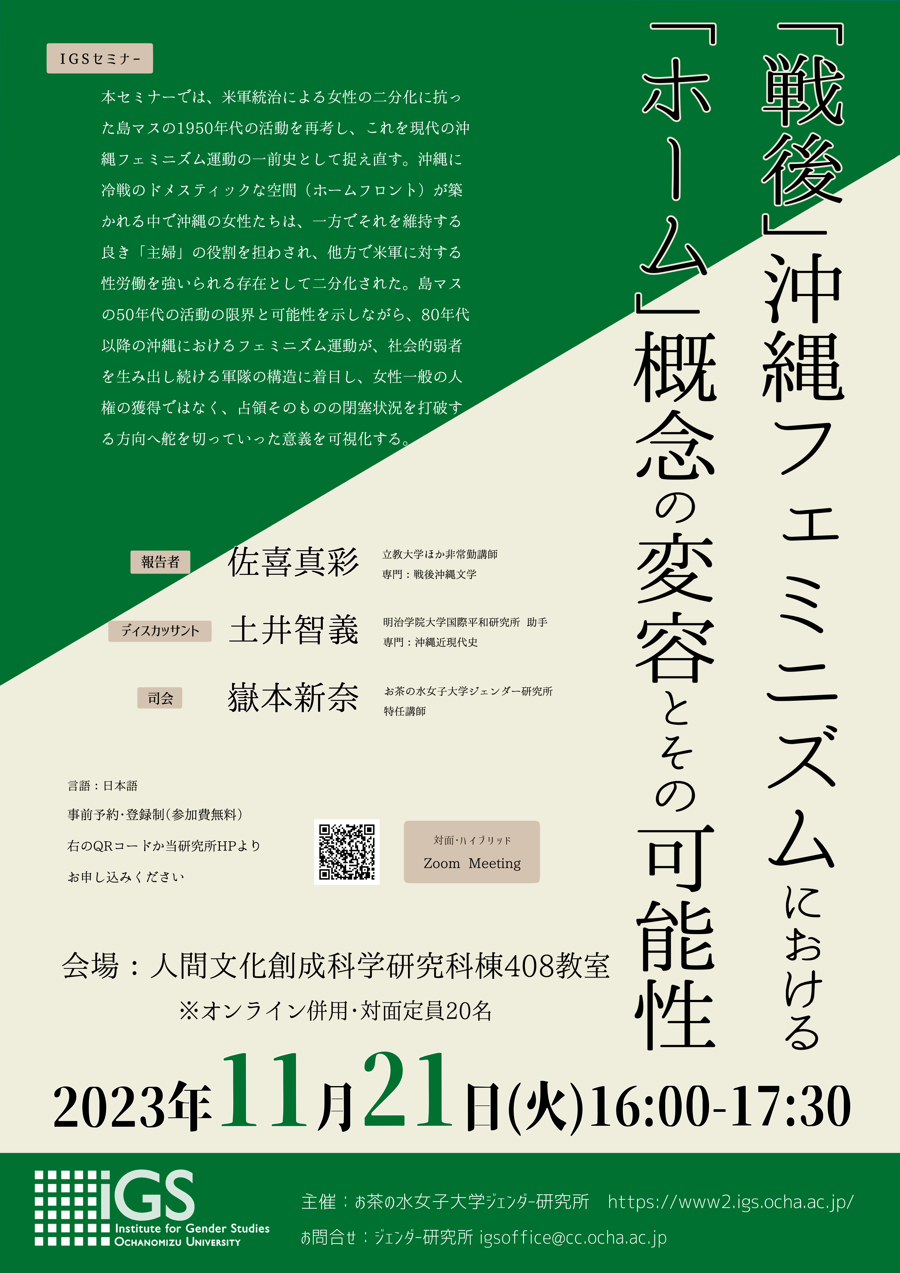主催:お茶の水女子大学ジェンダー研究所