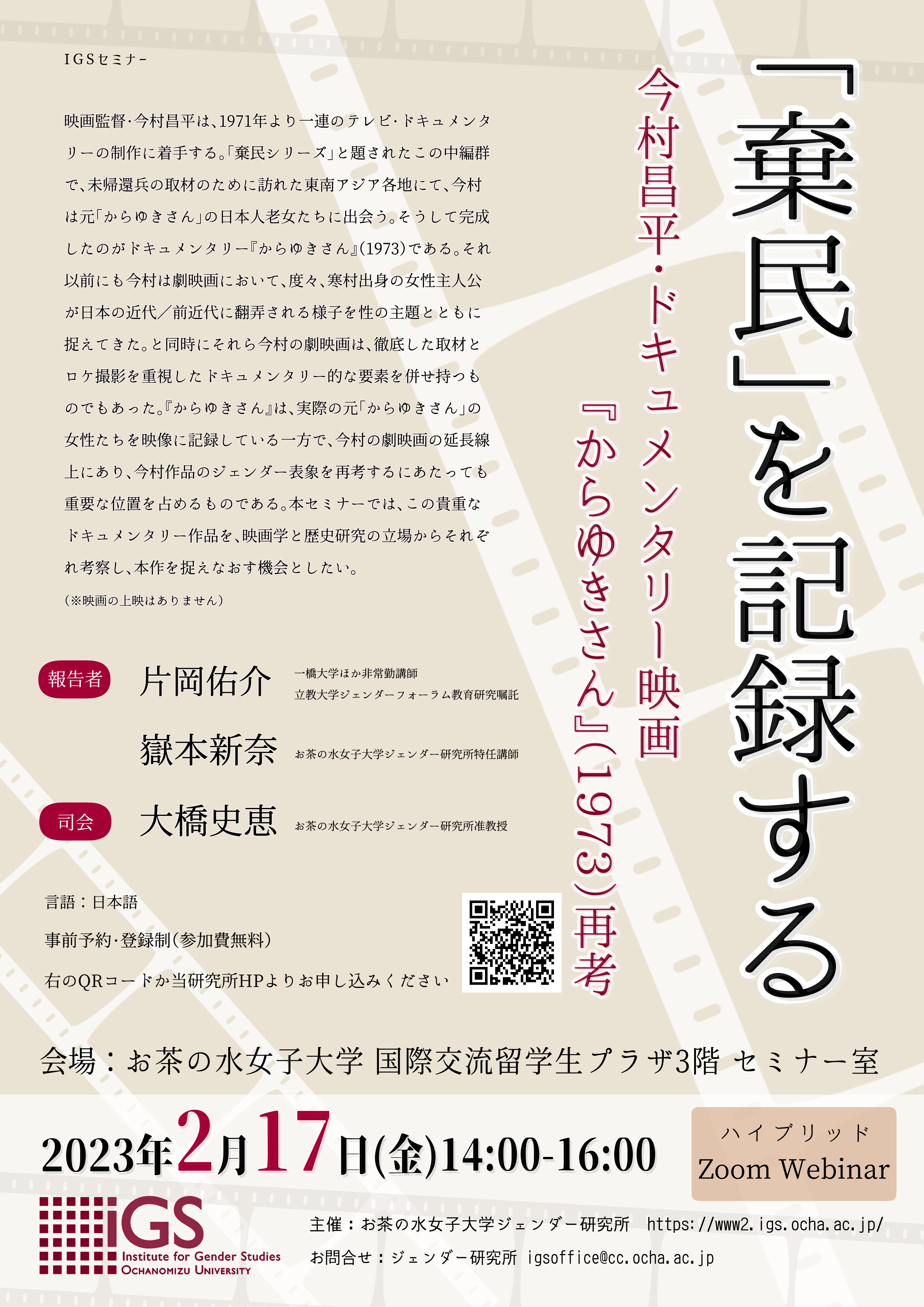 | 主催 | お茶の水女子大学 ジェンダー研究所 |
