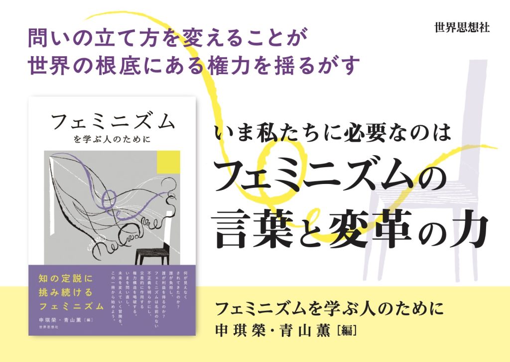 202604/05 News 2026 『フェミニズムを学ぶ人のために』刊行と「はじめに」公開のお知らせ 申琪榮教授(お茶の水女子大学)および青山薫教授(神戸大学)の共編著『フェミニズムを学ぶ人のために』が、2026年4月10日に世界思想社より刊行されます。 本書には、本研究所の特任リサーチフェローである本山央子さんも寄稿しています。 発売に先立ち、世界思想社のウェブマガジン「せかいしそう」にて、本書の「はじめに」が公開されました。 ぜひ、下記リンクよりご覧ください。 https://web.sekaishisosha.jp/posts/9432